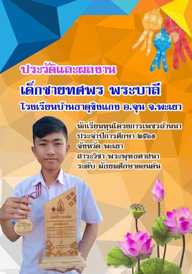 ขอแสดงความยินดี กับนักเรียนทุนเพชรล้านนา ด.ช.ทศพร พระบาลี รร.บ้านธาตุขิงแกง 2562